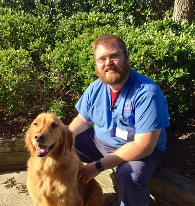 Hello! My name is Andrew. I started working with dogs as a counselor at a doggie day care in 2015, but I’ve always loved being around animals. In mid-2016 I jumped on the opportunity to join the CVMH staff as a Kennel Technician, and I love it. I learn more every day working around this talented team of professionals. I share a giant Golden goofball named Wyatt with my family, as well as three cats who boss him around. I can’t wait to meet you and yours, and make their stay at Camp Carolinas delightful!