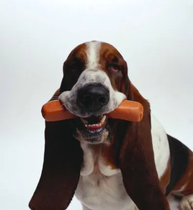 Hot dogs can be a great treat in moderation. A hot dog can be swallowed whole and cause choking, so cut them into small pieces. Hot dogs are a high fat food and cause stomach upset if fed in excess. Even hamburger or steak can disrupt the digestive system and cause pancreatitis, which often requires hospitalization.